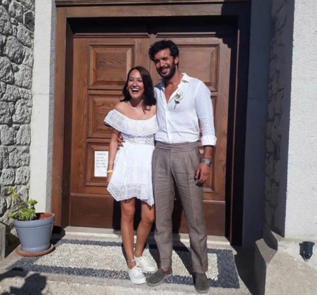 Ünlü oyuncu Burçin Terzioğlu, spor eğitmeni sevgilisi Umut Duygu ile Demet Evgar’ın düğününe katıdı. Terzioğlu’nun, parmağındaki tektaş yüzüğü ve alyansı dikkat