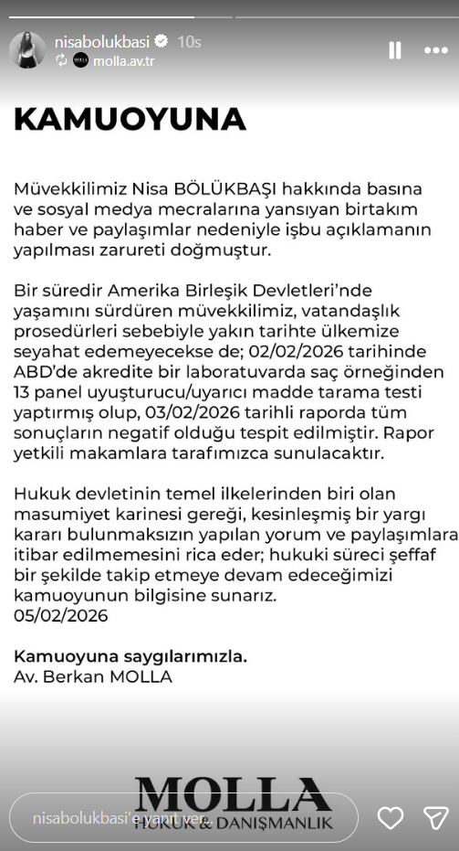 İstanbul Anadolu Cumhuriyet Başsavcılığı’nca yürütülen ünlülere yönelik yasaklı madde soruşturması kapsamında hakkında gözaltı kararı verilen Survivor şampiyonu Nisa Bölükbaşı, ABD’de